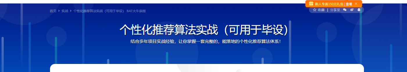 推荐算法工程师已成为各个大厂炙手可热的岗位,社招起步薪资20k+!本课程,讲师从算法原理到代码实战,细致的讲解个性化推荐算法如何在开发中落地,让你可以建立起自己的推荐算法体系。同时也可以让你掌握算法公式,模型参数迭代等技术的微小细节。