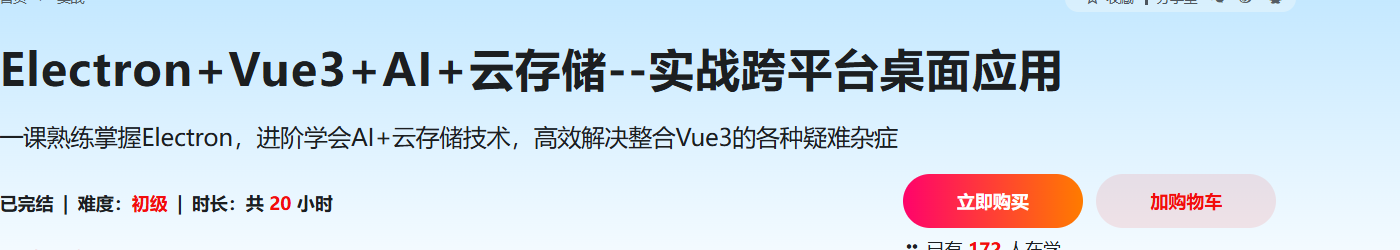 课程介绍:无论前端、后端,还是应届生,只要具备前端基础,想系统掌握Electron,及整合开发中疑难问题解决方案的,并希望将理论转化实践的,这门课程是你的不二之选。课程融合Electron、Vue3、AI及云存储,以项目为驱动,从零打造跨平台、智能化、高安全性及扩展性的桌面应用。全面应用并高效掌握Electron,及与主流技术整合的疑难问题解决。无论晋升涨薪、技能拓展,还是面试求职,都能让你在激烈竞争中脱颖而出!