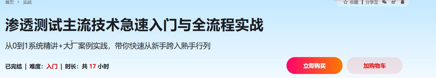 安全无小事,网络安全关乎每个人,是企业刚需,是国家战略。网络安全人才市场需求大,职业发展前景非常可观。慕课网联合大厂资深安全专家,全新推出渗透测试课程,带你轻松入行网络安全。课程将从0到1系统精讲主流渗透测试技术,精选大厂案例驱动教学,让你高效吸收大厂实践经验与技巧,提升渗透测试攻坚能力,快速从新手跨入熟手行列。