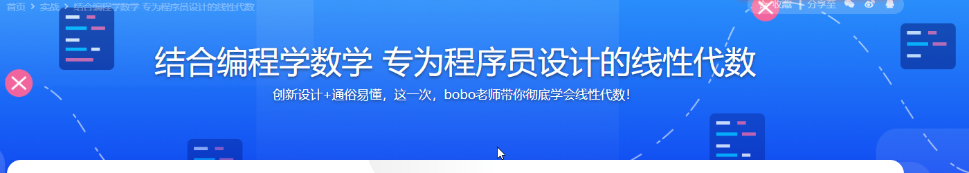 课程介绍:bobo老师专为程序员设计的线性代数课程,全新的课程设计模式,配合编程讲解,拒绝枯燥的例题讲解,而是讲清楚每一个知识点的来龙去脉,完整学习线性代数领域的知识体系,这一次,让你学会线性代数!