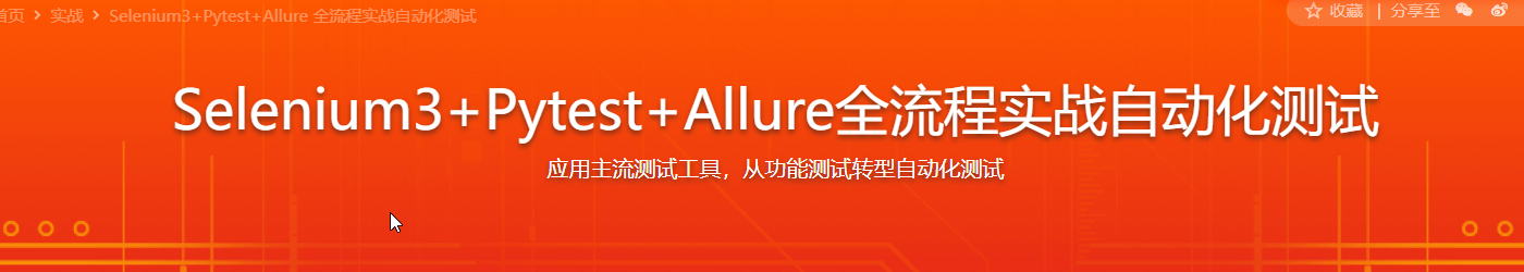 课程介绍:不会自动化的测试是没有未来的!本课程以时下主流的测试框架Selenium3+Pytest+Allure,手把手带你实践自动化测试全流程工作,体验自动化测试的畅快,大大提升个人效率。