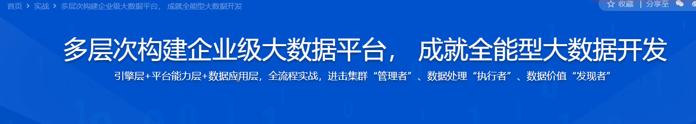 课程介绍:岗位越细分,职业上升通道局限性越大。本课程通过构建多层次企业级大数据平台,带你开拓架构思维,掌握“全能型”技能体系,综合提升集群管理+平台能力层建设+数仓建设+数据应用实战能力,助力你尽早成为驾驭“多赛道” 的 “全能型” 大数据技术人才,获得岗位自由切换和晋升的 “优先权” 。