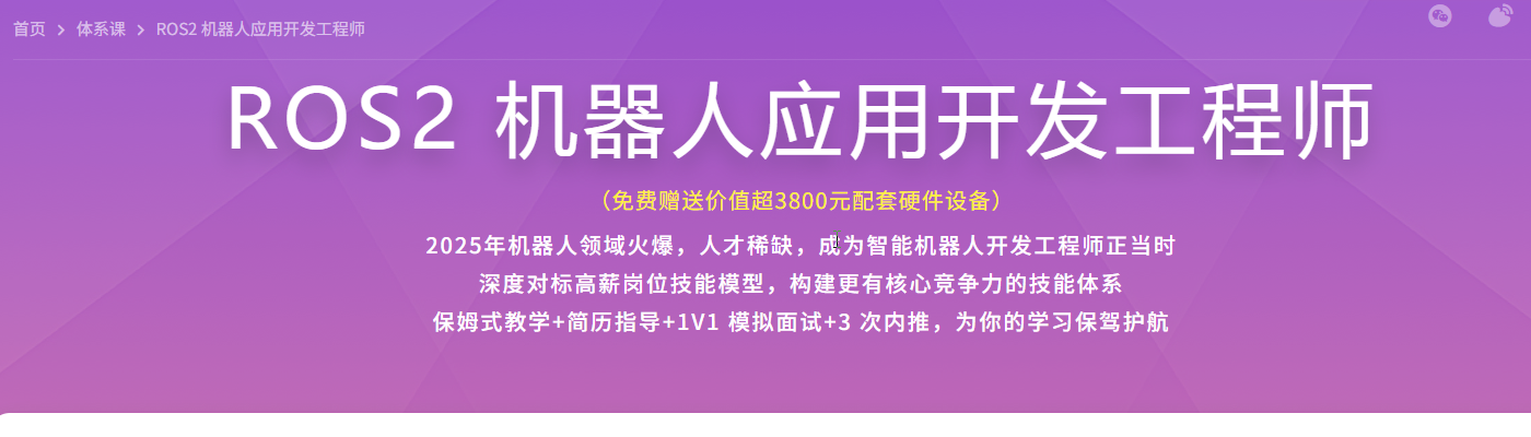 本周课程聚焦热门传感器实操,涵盖激光雷达、相机、IMU、GNSS 等,内容包括概念学习、仿真开发、消息接口实现、数据处理及多传感器融合等,助学员掌握 ROS2 中传感器核心应用与开发技巧。