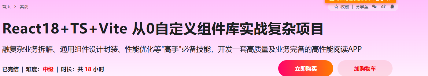 “驾驭复杂业务”既是开发者的基本功,又是能力的分水岭。因此课程带你基于React和Hooks系统攻克复杂业务开发难题,找到复杂业务架构技术的共性,提取可复用的经验,做到一通百通。并获取复杂业务拆解、性能优化、设计与封装通用组件等诸多“高手”必备的实用技能。最终产出一套高质量通用组件库及一套业务完备的高性能阅读APP。拉开你与普通开发者的差距!