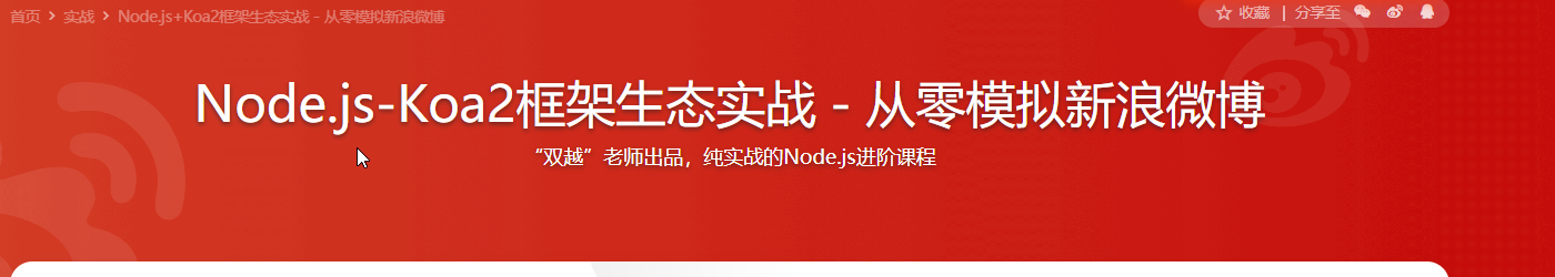 课程从零模拟开发一个基本功能完备的微博系统,完成整个Koa2框架生态的综合技术实战,包括各类中间件,MySQL数据库设计,微博项目架构等诸多干货内容,最后带你从技术层面总结 Node.js 实践经验 。