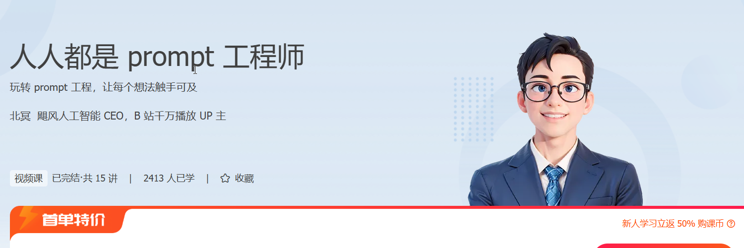 在人工智能迅速渗透各行各业的今天,掌握与 AI 高效协作的能力已成为后端与架构师的核心竞争力之一。本课程《人人都是 Prompt 工程师》由飓风人工智能 CEO 北冥主讲,专为希望借助 AI 提升开发效率、优化系统设计的后端与架构方向学习者打造。