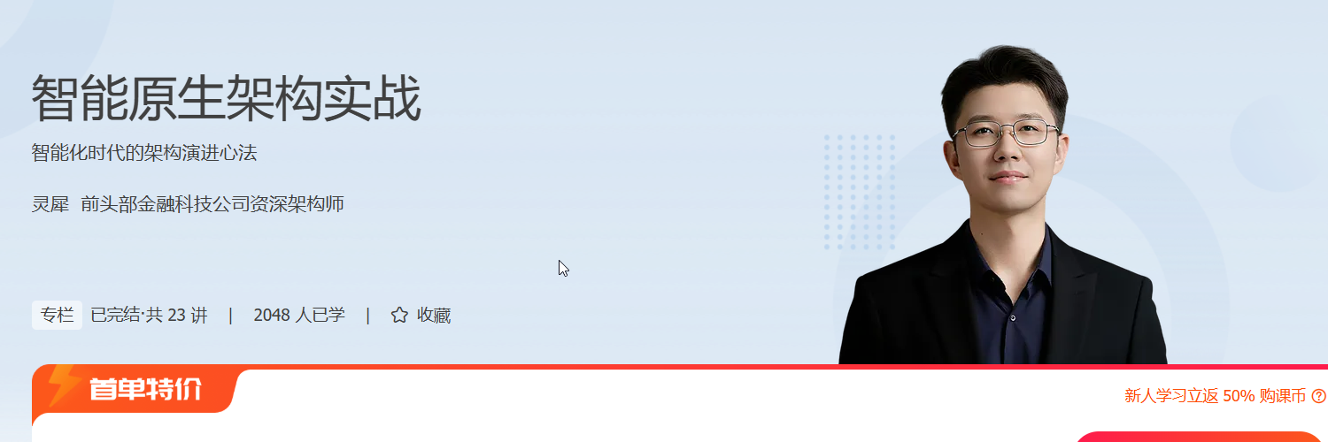 为了帮你解决上述困惑,我们邀请了灵犀老师开设这门《智能原生架构实战》课程,为你带来一线架构师在企业实践中,基于大模型规划和重塑企业系统架构的深刻思考与落地经验。