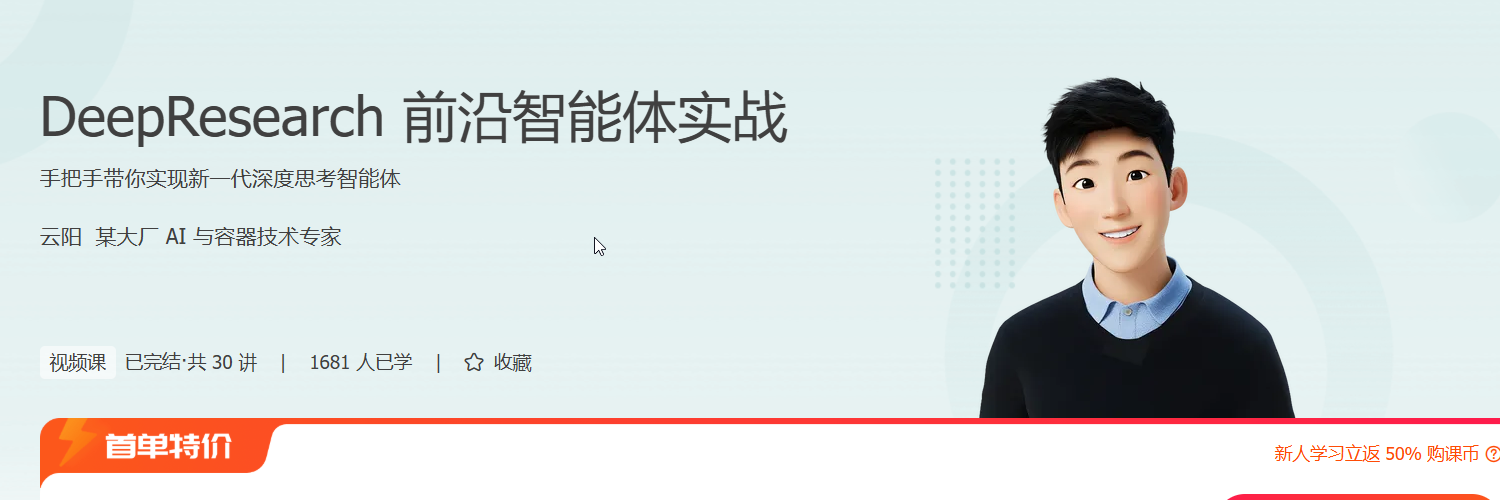 之后,我们将深入 DeepResearch 原理、核心技术(如深度搜索、广度搜索、反思、记忆能力)与实现方案,通过动手演练让智能体“逐步进化”。最终,我们会完成一个用于撰写上市公司研报的多模态专家智能体,让你将前面所学的技术彻底融会贯通。