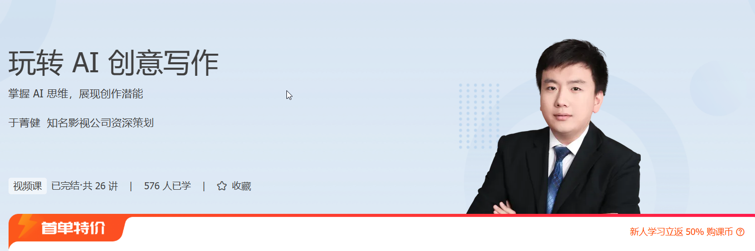 你是否想过,写作不仅是文字的堆砌,更是思维的工程?《玩转 AI 创意写作》带你用 AI 重构写作方式,让内容创作更高效、更有深度。课程由资深影视策划大白老师主讲,融合 AI 与写作的双重力量,助你在前端 / 移动领域打造更具影响力的内容输出。