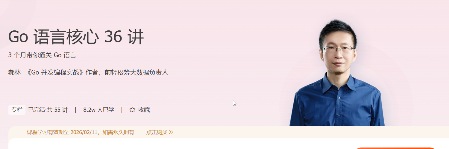 专栏作者郝林承诺:“我可以保证的是,如果你认真地跟我一起走完这个专栏,那么基本掌握 Go 语言是肯定的。至少,本专栏一定会成为你学习 Go 语言最重要的敲门砖和垫脚石。”