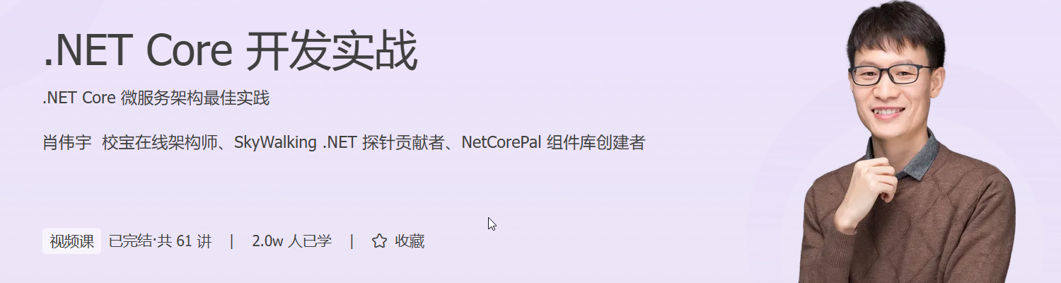 你是否想从开发走向架构设计,打造高可用、可扩展的云原生应用?《.NET Core 开发实战》正是为你准备的进阶课程!课程由资深架构师肖伟宇主讲,围绕.NET Core 微服务架构设计与落地,带你掌握现代后端开发的核心能力。