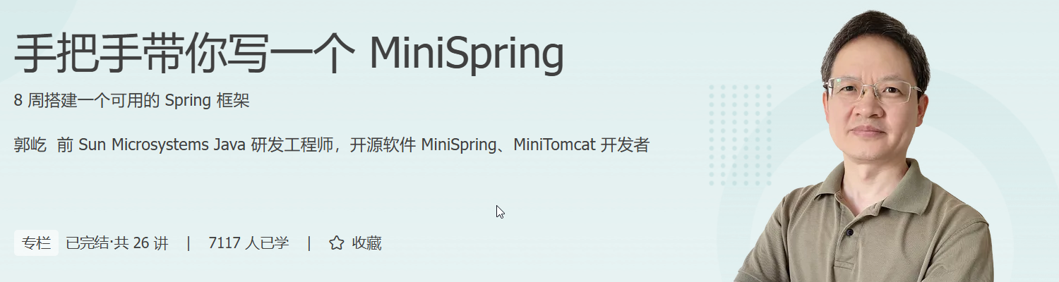 你是否曾好奇,那些支撑起千万级并发的后端系统,其底层架构究竟是如何运作的?本课程《手把手带你写一个 MiniSpring》,正是为你揭开 Spring 框架底层原理的神秘面纱而设计。通过 8 周动手实践,你将亲手实现 IoC 容器、MVC、JDBC Template 与 AOP 四大核心模块,深入理解 Spring 的设计思想与架构逻辑。
