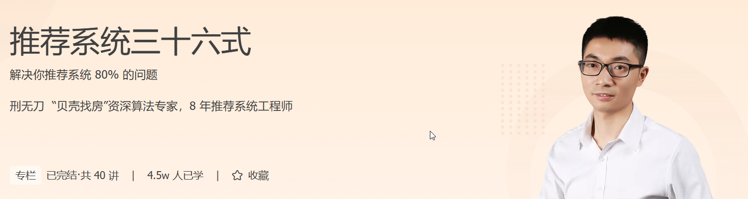 在信息爆炸的时代,推荐系统已成为连接用户与内容的核心桥梁,尤其在后端架构中扮演着举足轻重的角色。本课程《推荐系统三十六式》由贝壳找房资深算法专家陈开江主讲,从概念、原理到工程落地,系统讲解推荐系统从 0 到 1 的完整构建过程。你将深入掌握协同过滤、矩阵分解、Bandit 算法、深度学习模型等核心技术,并理解如何在实际业务中设计实时推荐架构、优化排序模型、解决冷启动难题。课程还涵盖 Netflix 三层架构、Lambda 架构、特征工程、AB 测试等后端关键实践,助你打造高并发、低延迟、可扩展的推荐服务。通过学习,你不仅能掌握推荐系统的底层逻辑,还能提升工程实现、系统设计与算法协同的综合能力,为职业进阶提供强大支撑。无论是优化现有系统,还是构建新一代智能后端架构,这都是一门不可错过的实战指南。