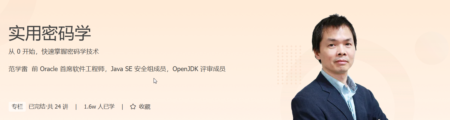 因此,我们邀请了范学雷老师,他会通过这门课,帮你厘清密码学里的复杂概念,给出不同场景下,密码技术的选择和使用注意事项,尽可能帮你规避掉密码学常见的“坑”,让你真正地学会、用好密码学。
