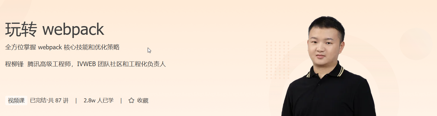 无论你是对 webpack 一无所知的初学者,还是经验丰富的前端工程师,都能够通过这个课程,提升对 webpack 的理解,建立属于你自己的 webpack 知识体系,并在工作中能够高效的使用 webpack,完成各类前端项目的打包构建工作。