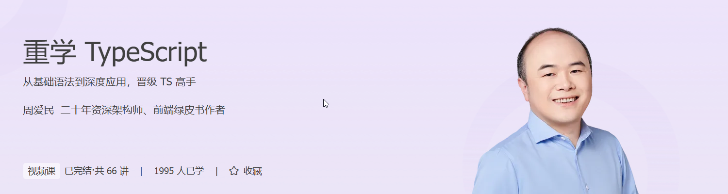 为了让你科学高效地掌握 TypeScript,我们特意邀请了周爱民老师推出这门《重学 TypeScript》视频课,通过大量的示例与跟学带练,一步步带你从 TS 新手晋升为 TS 高手