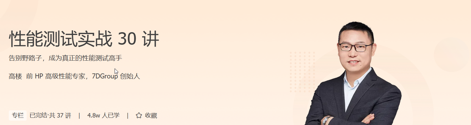 你是否好奇,一个看似简单的性能测试背后,隐藏着怎样的技术逻辑与实战智慧?本课程《性能测试实战 30 讲》将带你深入“计算机基础”领域中最关键的一环——系统性能评估与调优。课程由前 HP 高级性能专家主讲,内容覆盖性能测试全流程,从核心指标、工具使用、监控分析到真实案例拆解,层层递进,直击性能瓶颈的本质。