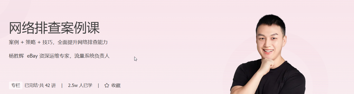在计算机基础领域,网络排查能力是工程师解决复杂问题的核心技能。本课程由 eBay 资深运维专家杨胜辉主讲,围绕真实案例与实战工具,系统提升网络问题定位与解决能力。你将深入掌握 TCP 协议机制、HTTP 状态码分析、TLS 握手失败排查等关键技能,并熟练使用 Wireshark、tcpdump 等抓包工具,构建完整的网络排查知识体系。