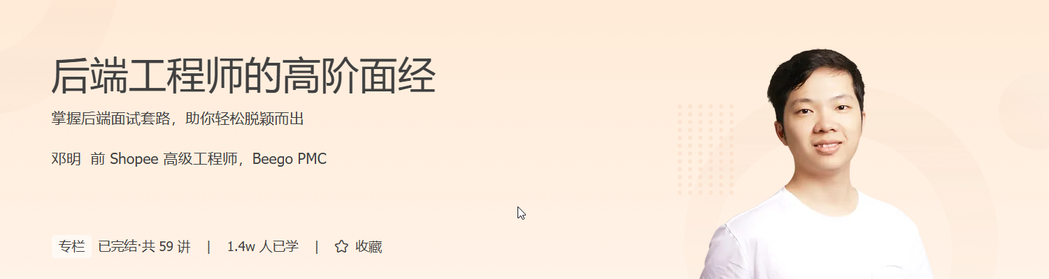 在后端开发领域,技术深度与系统设计能力是职业发展的核心驱动力。本课程《后端工程师的高阶面经》由前 Shopee 高级工程师邓明主讲,专为初中级后端开发者量身打造,覆盖微服务架构、数据库优化、消息队列、缓存策略与 NoSQL 应用五大核心模块,直击中高阶技术面试痛点。