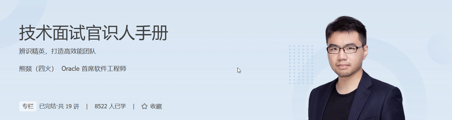 为此,我们邀请到了四火老师,他将根据自己在国内外大厂工作数年的面试经验,为你梳理了一套主导技术面试的方法论,帮助你辨识精英,打造高效能技术团队。