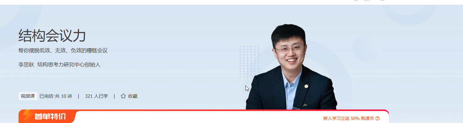 为了解决这些问题,让你真正掌握高效会议的组织方法,极客时间推出了这门精选合作课程,来自「结构思考力研究中心」。李忠秋老师将带着你从多个会议场景出发,解决实际问题,为职场加分。