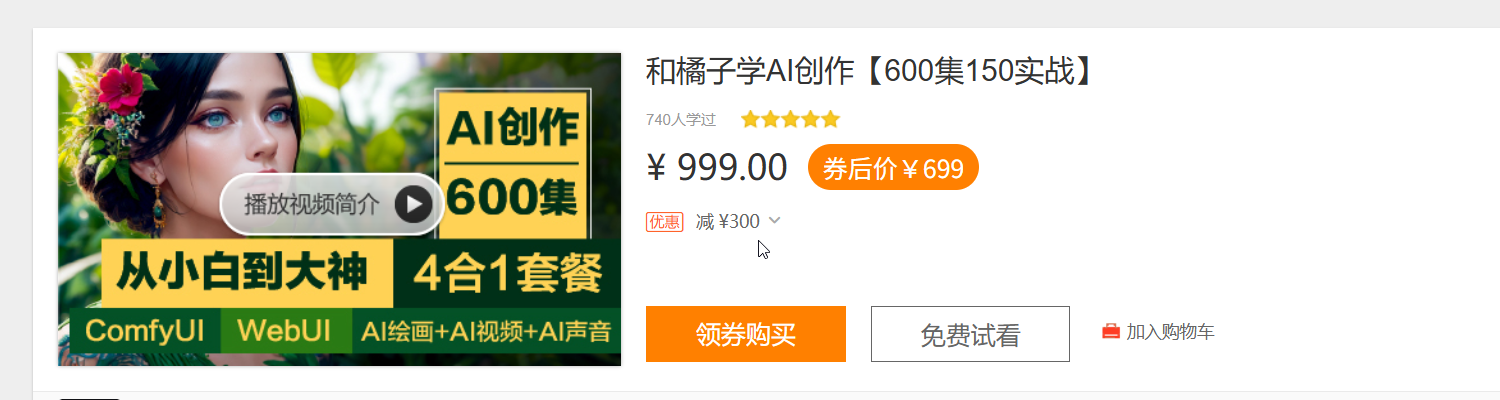 课时2视频【课程简介】和橘子学AI创作【600集150实战】4合1教程(免费看)26:31可试看