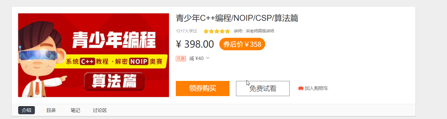 算法篇超详细的内容,诚意满满,和老师一起迈向问鼎竞赛的成长之路;(老师同类线下课程价格为¥3200~6800)