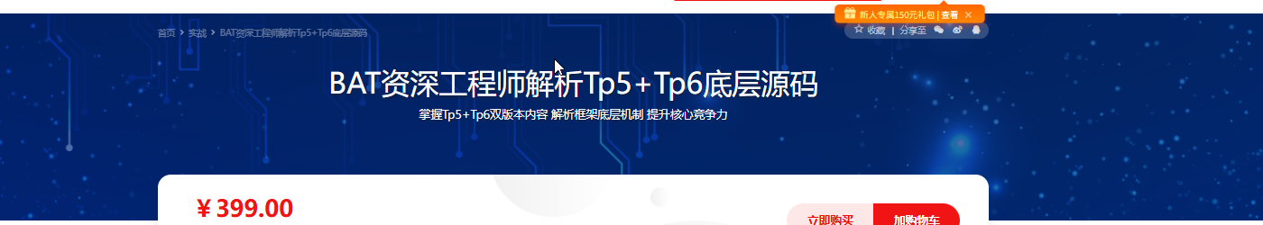 为解决大家对于TP框架底层源码的学习问题。singwa老师在本门课程为大家一步步分析ThinkPHP的底层源码,在分析的过程中,逐步提升技术水平。轻松应对不同的TP版本和不同的框架,掌握课程所授内容,可基本达到百度T5的水平。